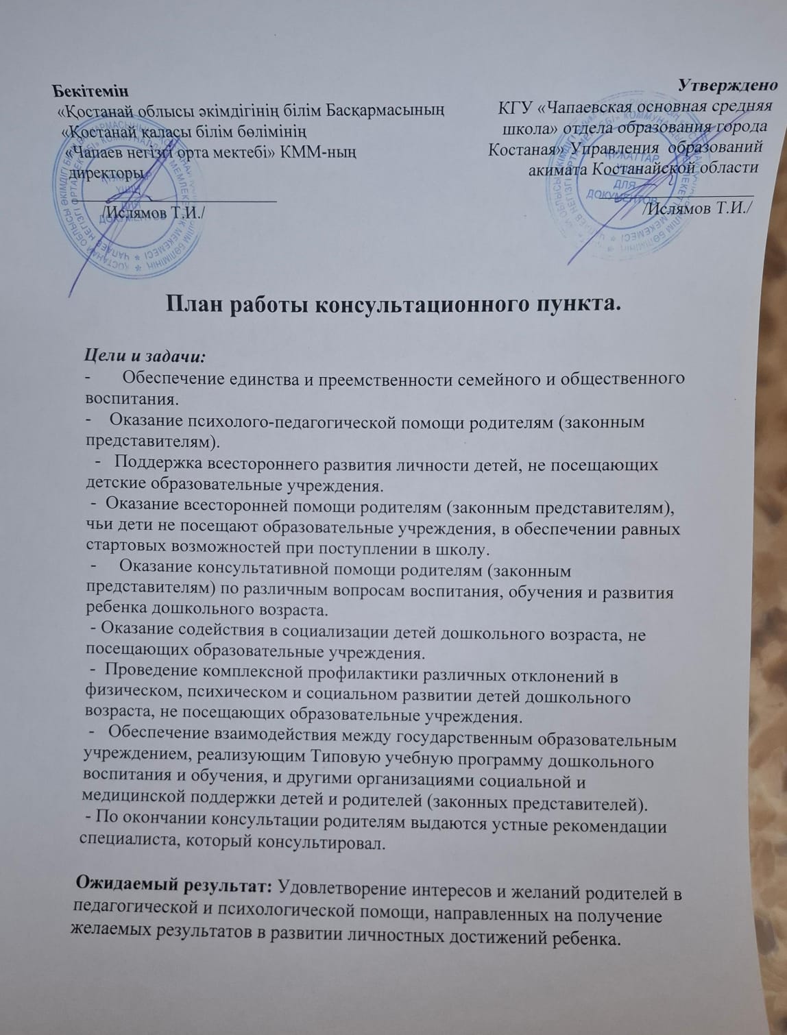 Отдела образования города Костаная