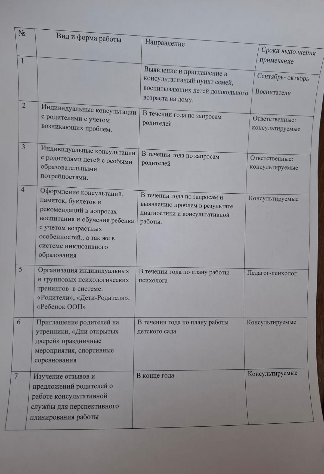 План работы консультационного центра мини-центр