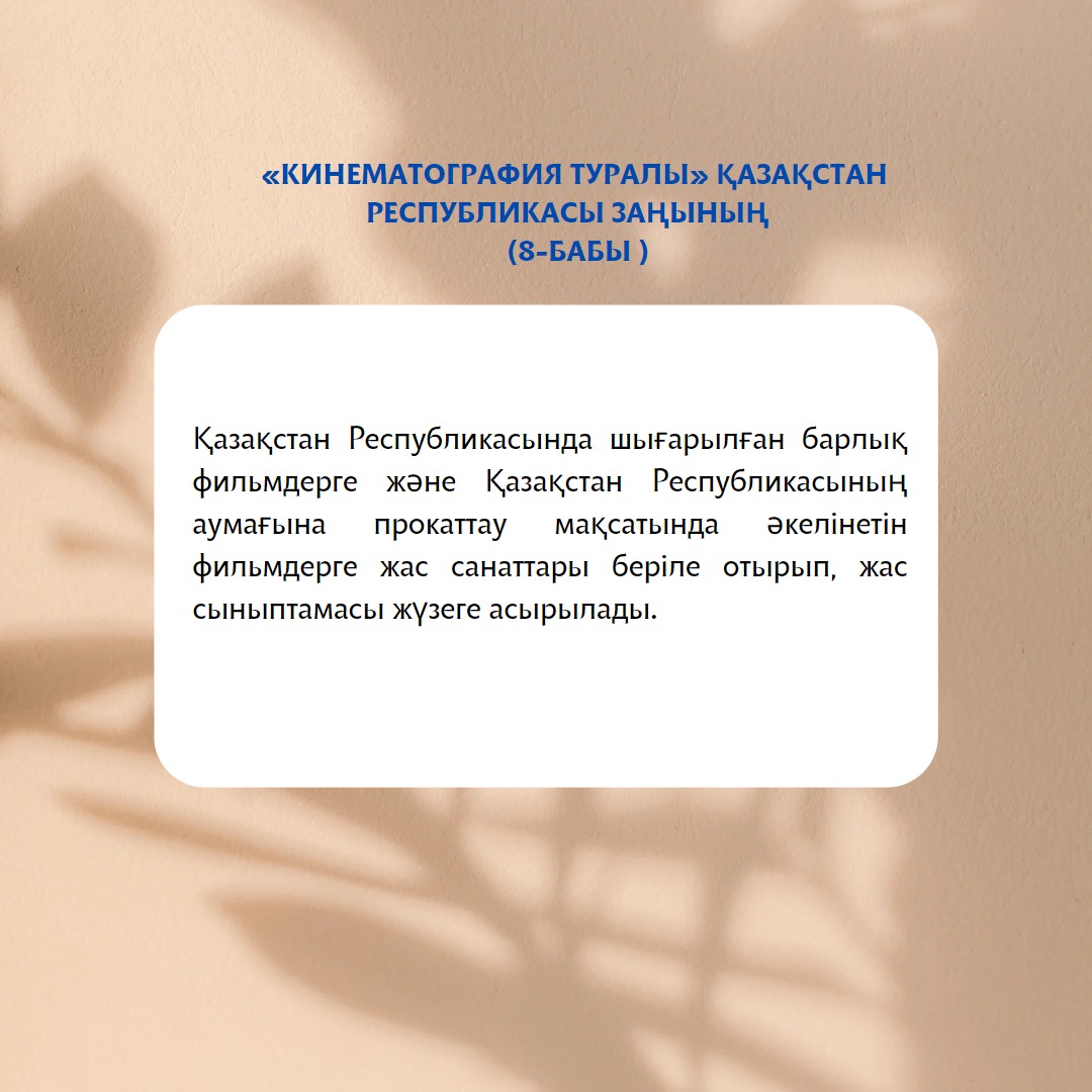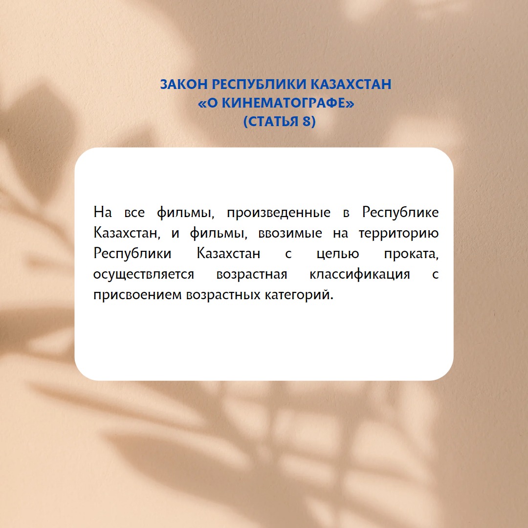 Запрещается осуществление для детей показа кинофильмов и мультфильмов, причиняющих вред духовному и нравственному развитию ребенка (ст. 39 Закона Республики Казахстан «О правах ребенка»).