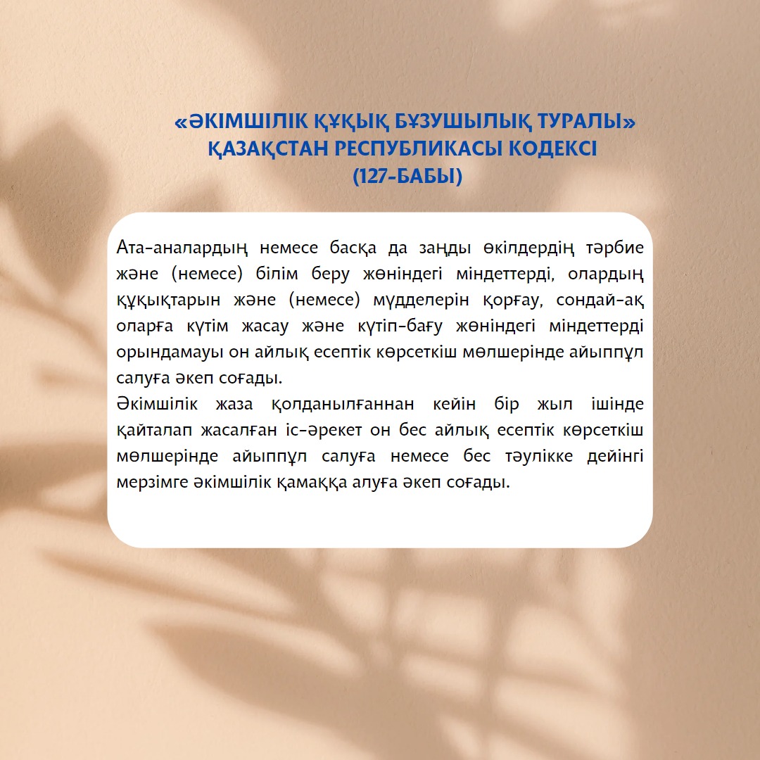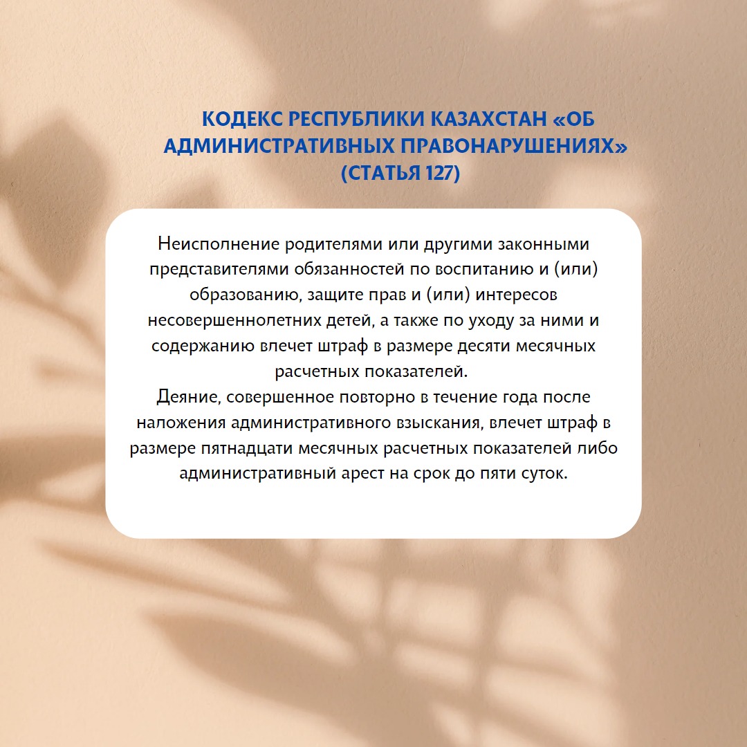 Уважаемые граждане, напоминаем о необходимости соблюдения норм законодательства РК в части защиты детей от факторов, причиняющих вред их здоровью и развитию.